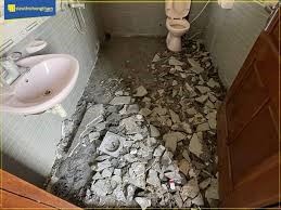 => Xử lý mặt bằng, đục gạch vữa nền tới lớp bê tông, vệ sinh bề mặt