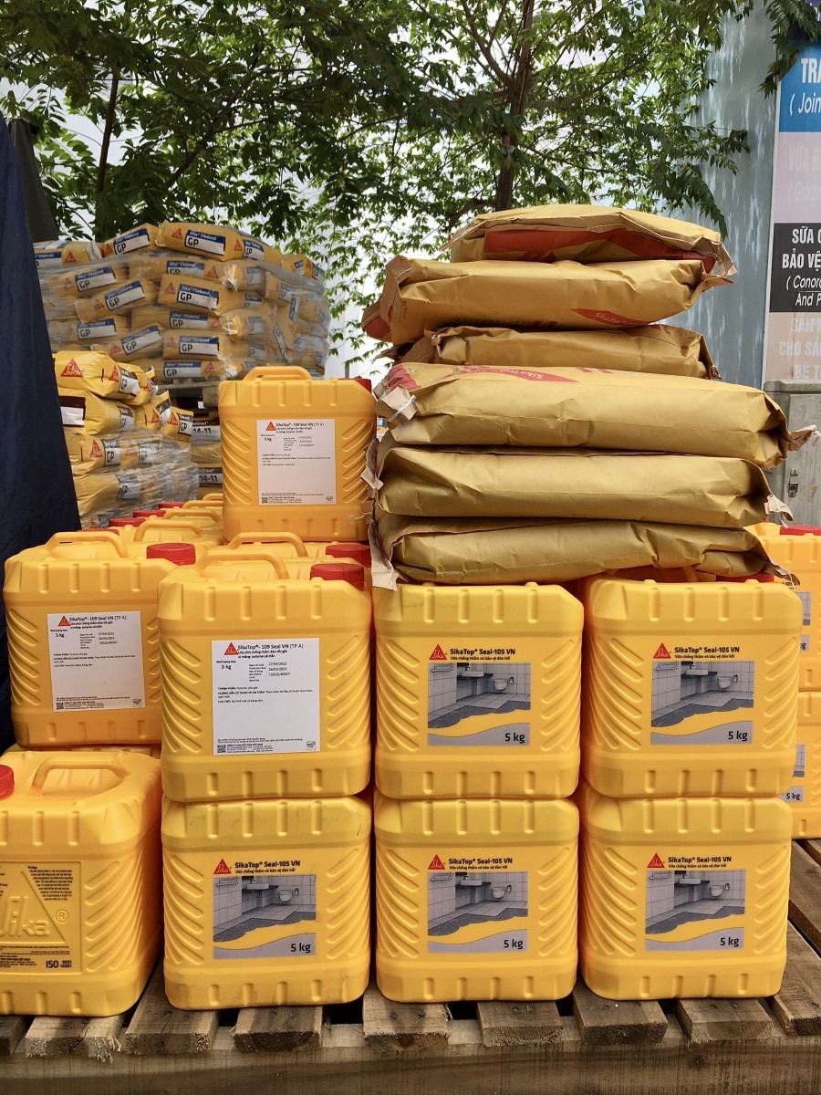 - Vật liệu : Sikatop Seal 109 gốc Xi măng Polymer màng chống thấm đàn hồi dẻo.
