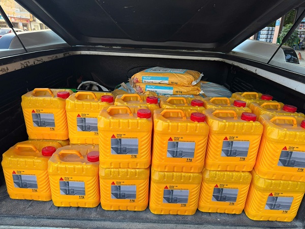 Lắc mạnh thành phần A trong vài giây rồi cho vào thùng trộn. Cho từ từ thành phần B vào thùng trộn theo tỷ lệ A:B=1:2 theo không lượng Dùng cần trộn điện tốc độ thấp trộn đều 2 thành phần