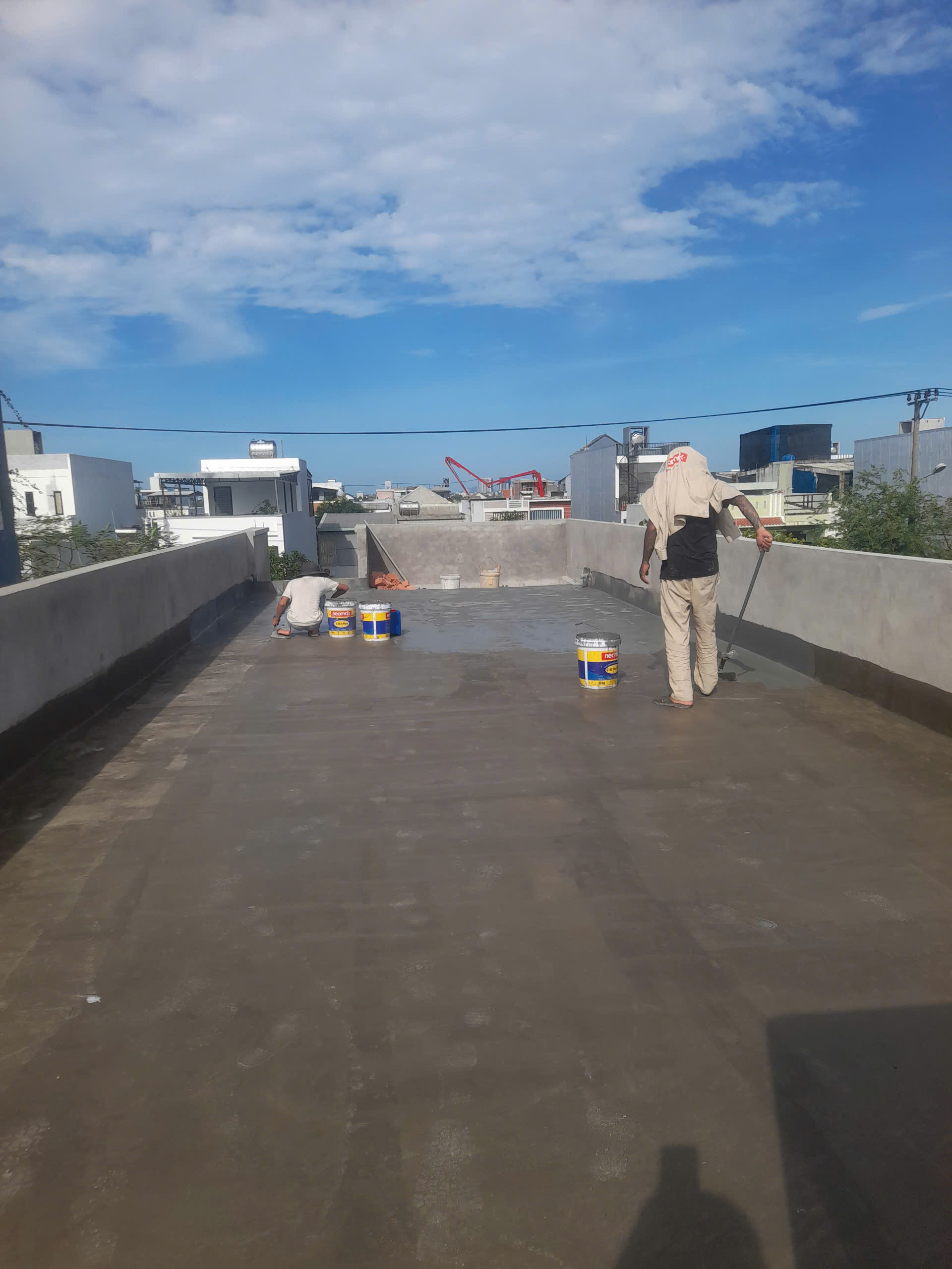 - Sau khi hoàn tất quá trình xử lý cổ ống và trám trét chân tường, để khô ráo và vệ sinh bề mặt thổi bụi cho sạch sẽ, tiến hành chống thấm .