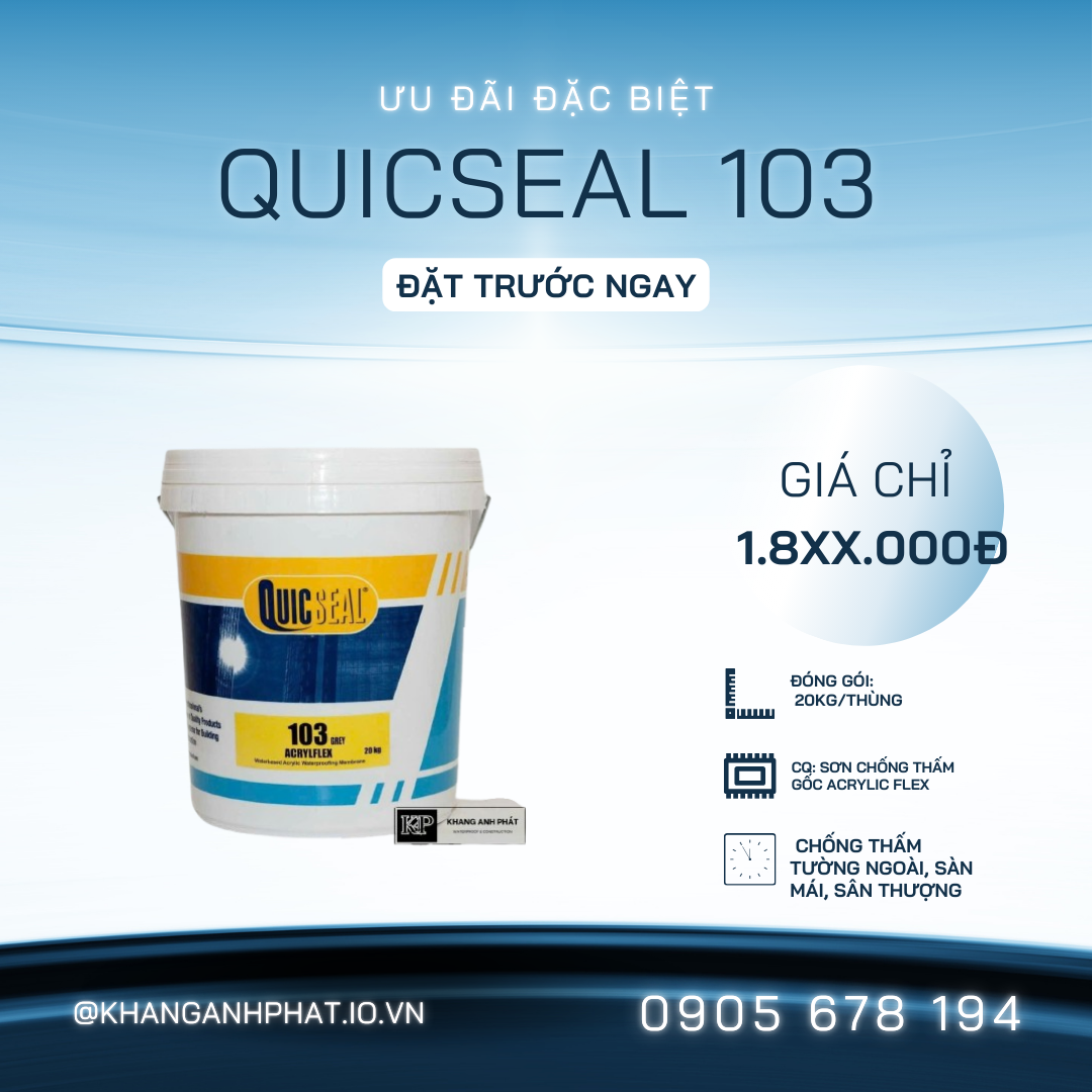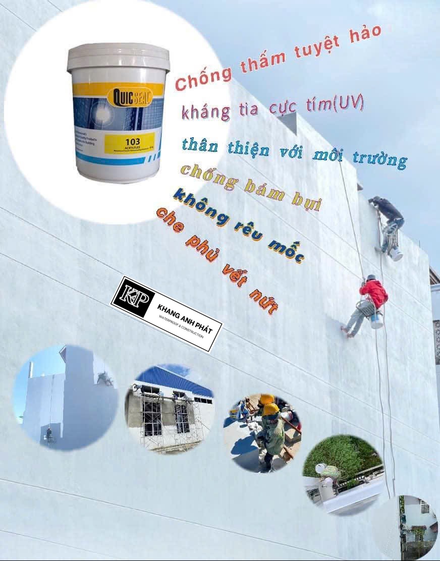 Quicseal 103 là màng chống thấm acrylic gốc nước một thành phần, sẵn sàng để sử dụng, thi công dạng lỏng