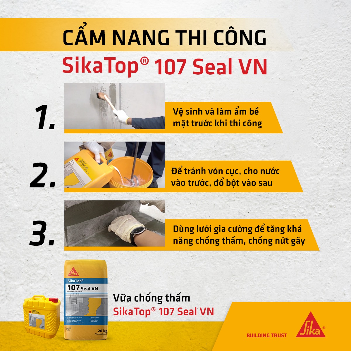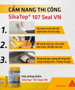 SikaTop®-107 Seal VN là vữa chống thấm gốc xi măng polyme cải tiến, 2 thành phần. Sản phẩm được thi công lên bề mặt vữa và bê tông để ngăn sự thấm nước.